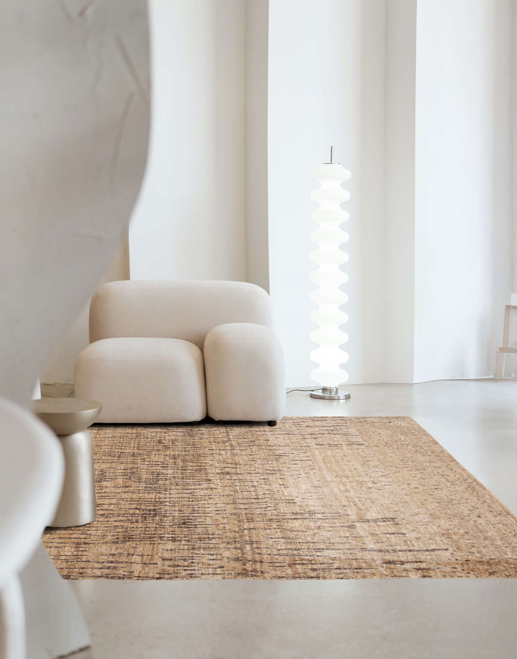 Handgemachter Teppich aus Schafwolle, Baumwolle & Sari Seide